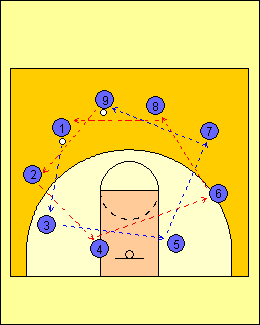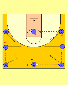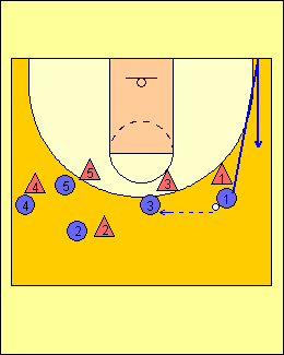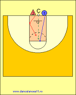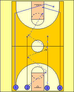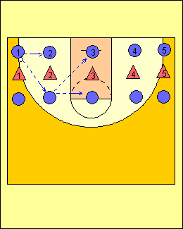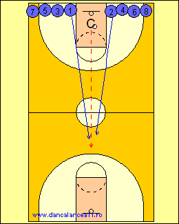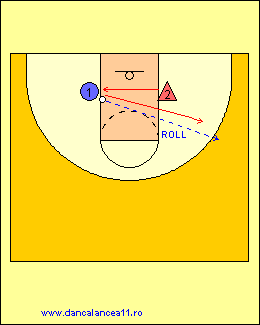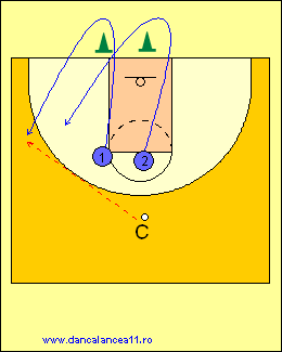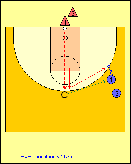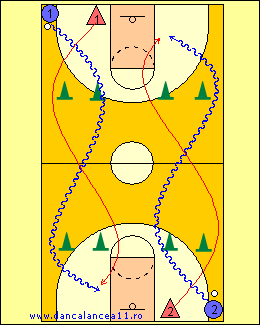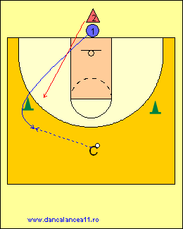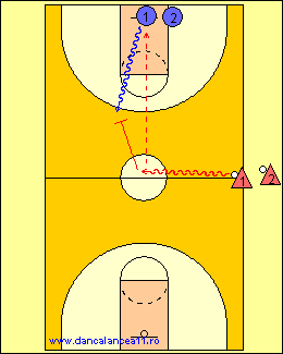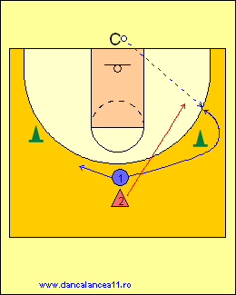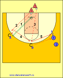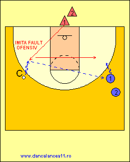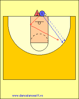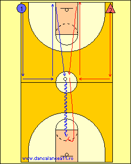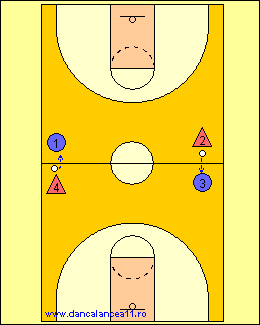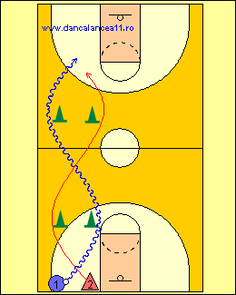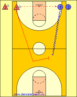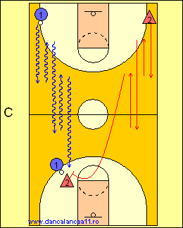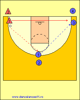 - 1 RULEAZA MINGEA SPRE LINIA DE TREI PUNCTE, TIMP IN CARE 2 ALEARGA DE LA BLOCK LA BLOCK, ATINGE PODEAUA SI ALUNECA IN APARARE LA 1