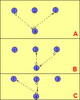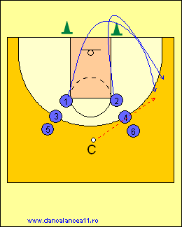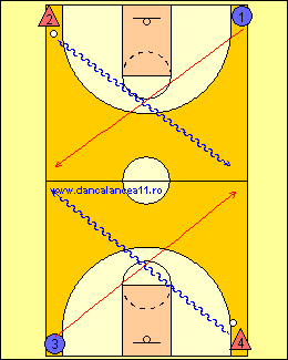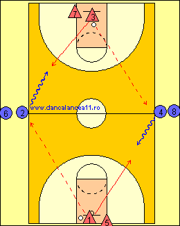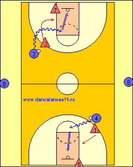 - APOI APARATORUL 2 PASEAZA LA ANTRENORUL C/B(3) SI APARATORUL 1 SE DEPLASEAZA SPRE C/B(4), APOI SPRE ATACANTUL 1