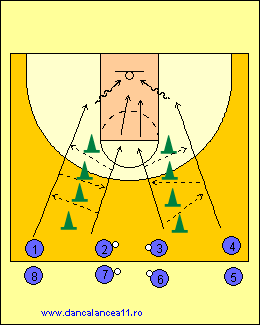 - 3 PASEAZA LA 4, SPRINTEAZA PE DIAGONALA, PRIMESTE PAS DE LA 1, II PASEAZA INAPOI, HAND - OFF