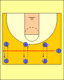 - JUCATORII 1 SI 2 SPRINTEAZA IN JURUL CONURILOR DE PE BASELINE CATRE ARIPA
