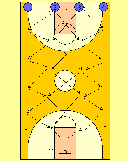 JUCATORII DE PE LATURA CU 4 JUCATORI PASEAZA DE LA UNUL LA ALTUL SI SPRINTEAZA PE DIAGONALA