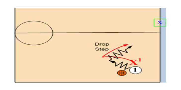 In pozitia defensiva de baza, picioarele sunt pozitionate in trepte, cu un picior in fata celuilalt. Partea slaba a pozitiei o constituie piciorul de conducere:este mult mai dificil sa ne miscam inapoi in directia piciorului de conducere decat in directia piciorului din spate. Daca atacantul dribleaza catre piciorul de conducere, rapid drop step cu piciorul de conducere in timp ce cu piciorul din spate pivotati invers. Dupa ce faceti drop step faceti rapid pasi laterali pentru a restabili pozitia defensiva cu piciorul de conducere inainte.
