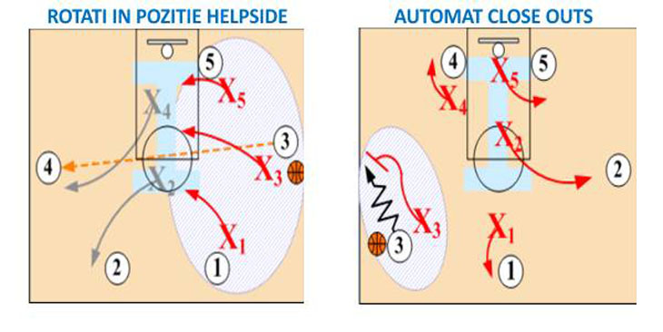 Nota:Principiile close out sunt aceleasi atat pentru apararea om la om, cat si pentru cea in zona.